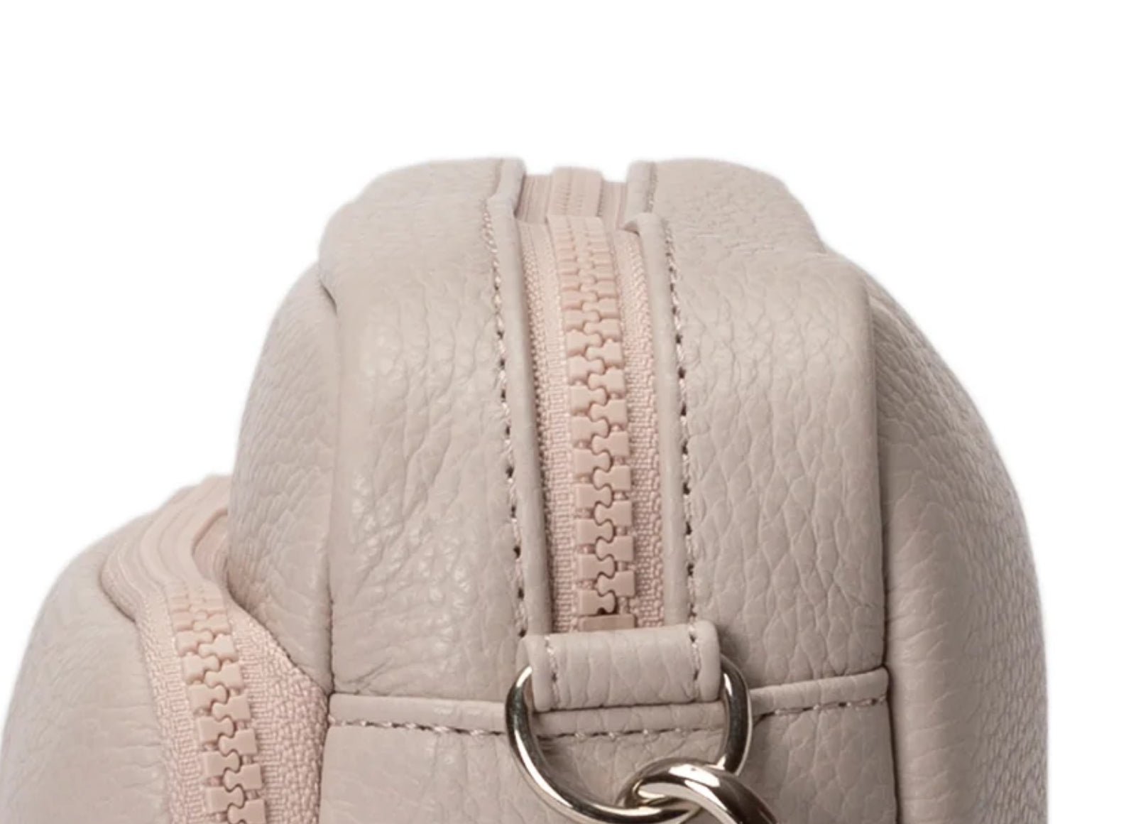 - メインのシュリンクレザーは世界最大のタンナー“Mastrotto社”の革を採用。ヨーロッパの最上級の原皮のみを選別し、丸革の状態でクロムでなめし、水性ラッカーで仕上げています。水性ラッカーは溶剤のラッカーに比べて生産時に臭いも少なく、環境に配慮したラッカー塗料です。柔らかくソフトな印象を保ちつつ、繊維の締まりもあるため、通常繊維の荒くなるお腹の部位でも皮がしっかりしています。