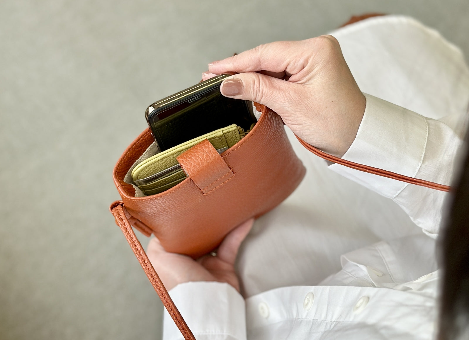 フォーマルでも十分ご活用いただける上品なフォルムと、日々の生活でも活躍する華やかなカラーと、十分な収納力を備えた、大人の女性のためのレザーアイテムです。